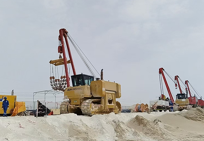 阿聯(lián)酋地區(qū)氣候炎熱,夏季氣溫常高達(dá)50攝氏度以上,加之沙塵環(huán)境復(fù)雜,對工程設(shè)備的性能提出了高要求。中蘇海工履帶吊管機(jī)以其強(qiáng)大的動力系統(tǒng)、高效的散熱設(shè)計以及堅固的結(jié)構(gòu),完美適應(yīng)了這些挑戰(zhàn),確保了施工的高效性和連續(xù)性。設(shè)備在高溫環(huán)境下運(yùn)行穩(wěn)定,操作靈活,極大地提升了施工效率,贏得了現(xiàn)場施工人員的一致好評。